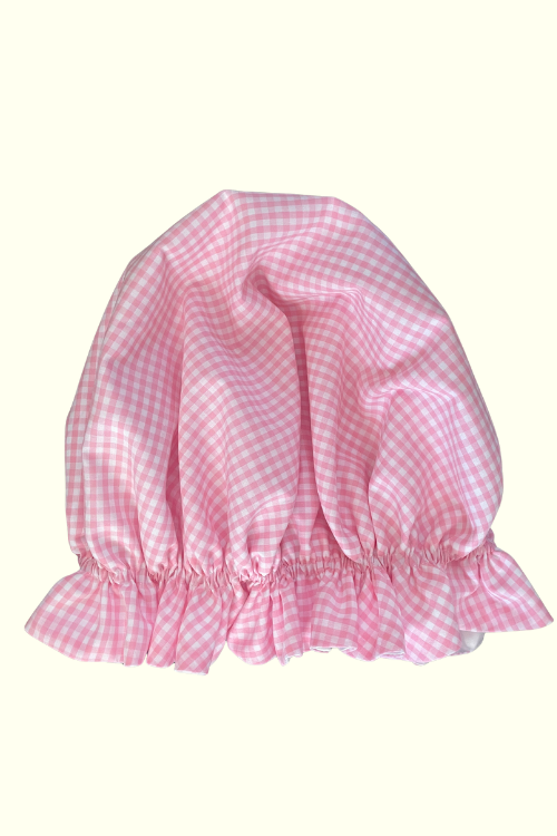 Sweet, soft, and oh-so-girly — this bonnet is made with a charming pink gingham print on the outside and smooth white satin on the inside to protect your hair from frizz and breakage.